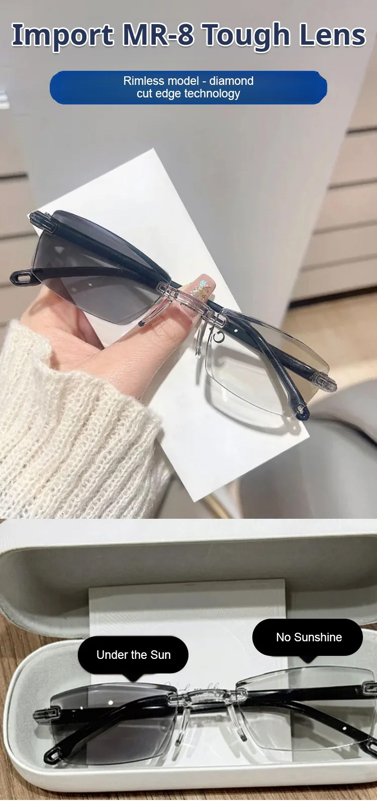 Color-changing anti-blue light presbyopia glasses